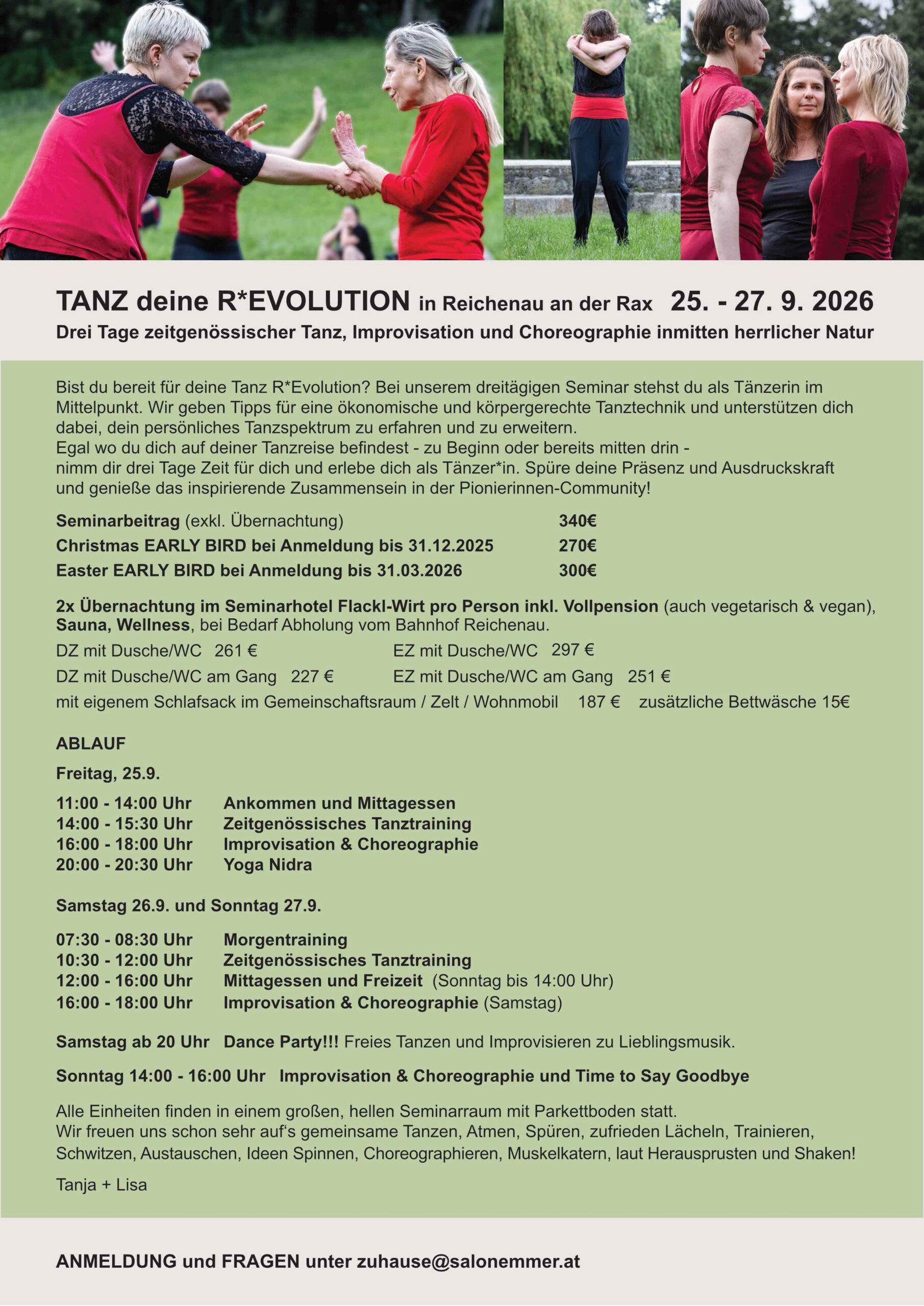 Tanzseminar in Reichenau an der Rax 25.-27.9.2026